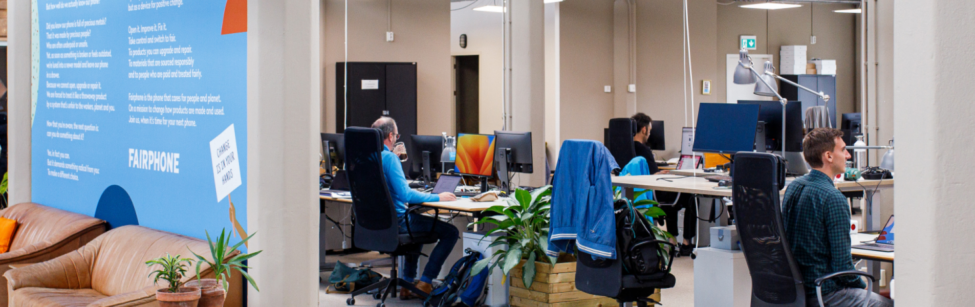 Makkelijk is dat niet, weten bei den uit ervaring. Fairphone bestaat inmiddels tien jaar. Dit jaar verwacht het bedrijf zo’n 230.000 telefoons te verkopen. Ter vergelijking: wereldwijd gaan er elk jaar ruim 1,4 miljard mobieltjes over de toonbank. Een druppel op een gloeiende plaat? Misschien wel. Maar daarom niet minder relevant, zeggen Van Har ten en Bruinsma. Verandering moet immers ergens beginnen en verduurzaming van de telefoniebrancheen eigenlijk de elektronicamarkt in zijn geheel is broodnodig. “Onze missie is om de elektronicawereld te inspire ren om dingen anders te doen op het gebied van mens en planeet. Idealiter nemen andere partijen onze manier van werken over en gaan wij out-of-business’’, zegt Van Harten met een lachje. “Maar zover is het nog lang niet’’, ver volgt hij zuchtend.